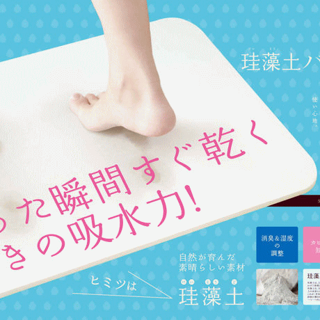 バスマットにまつわる憂鬱を一気に解消してくれたナイスなバスマット!普通のバスマットから珪藻土マットに切り替えた方も多いはず。